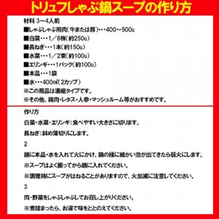 内容量:トリュフ しゃぶしゃぶ鍋 スープ 1袋 700g×3袋